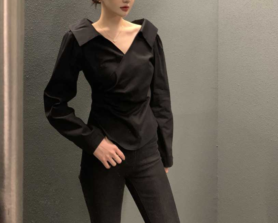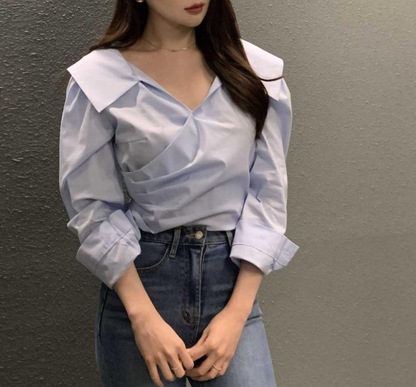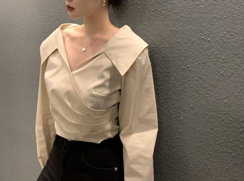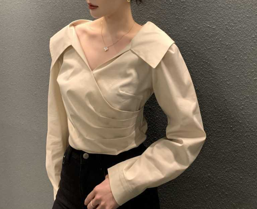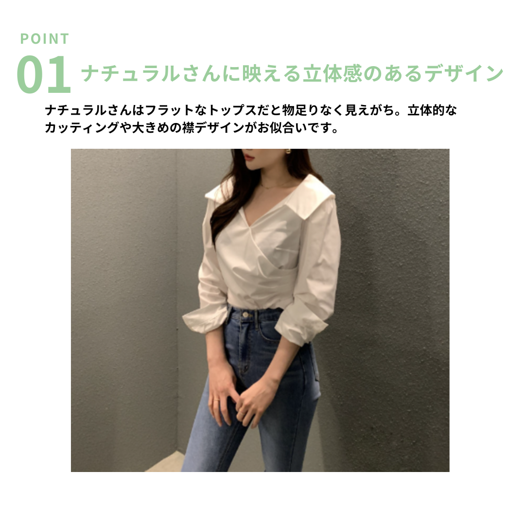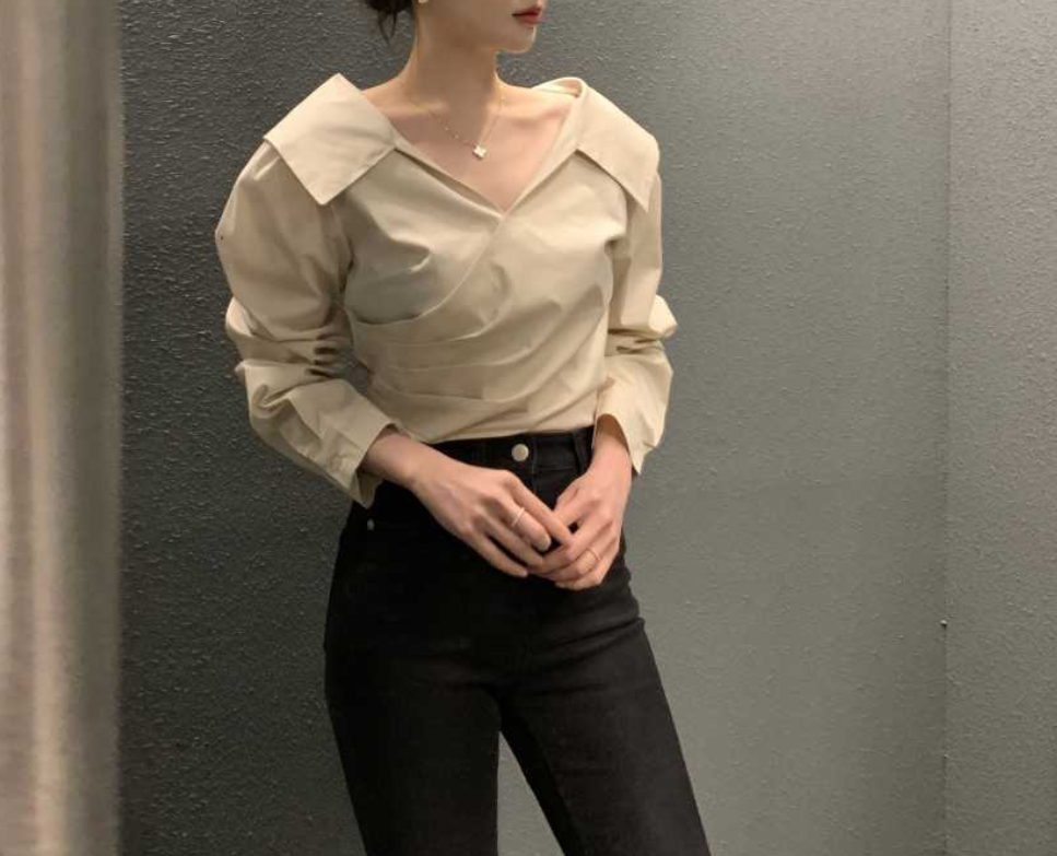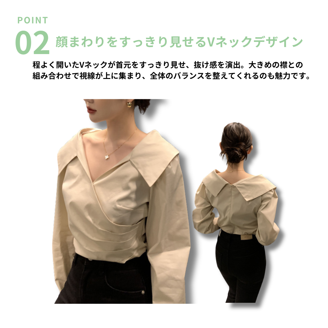 シンプルで洗練されたデザインのVネック長袖シャツトップスです。骨格ナチュラルさんの体型に馴染むゆったりとしたシルエットで、デイリーからオフィスシーンまで幅広く活躍します。スラックスやデニムとの相性も抜群です。