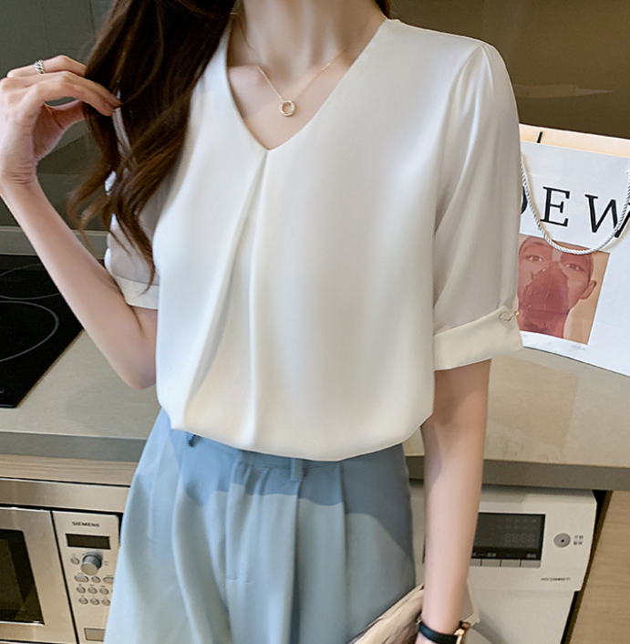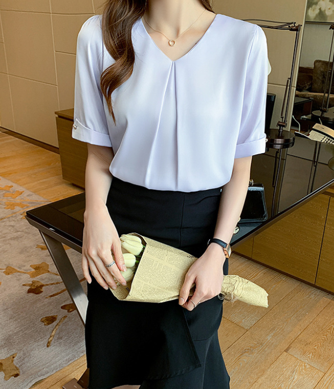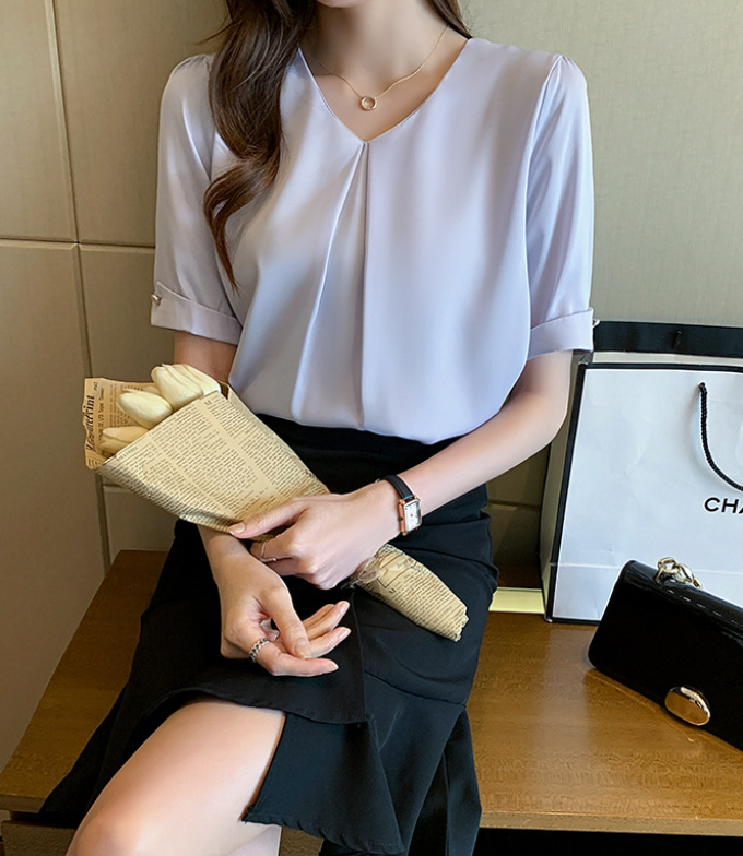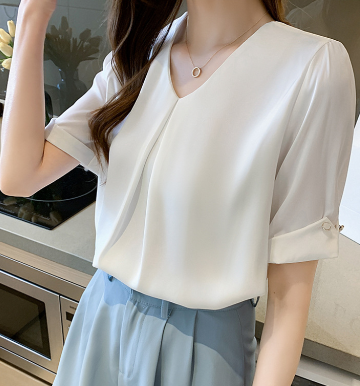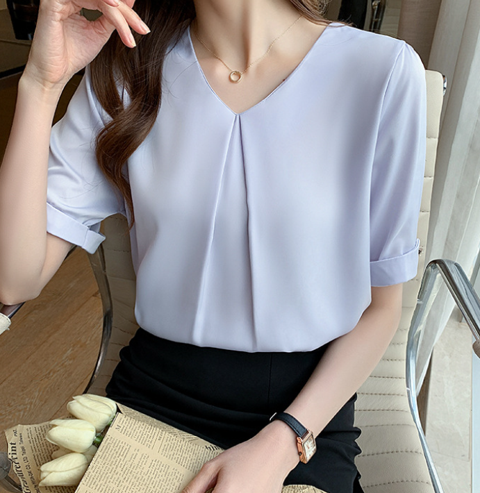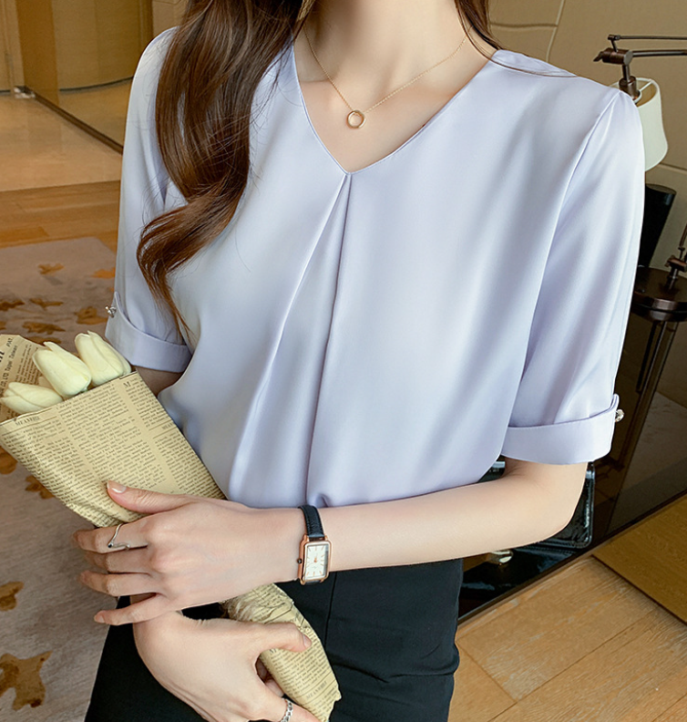 滑らかな素材でオフィスからカジュアルまで幅広く活躍する万能なトップスです。